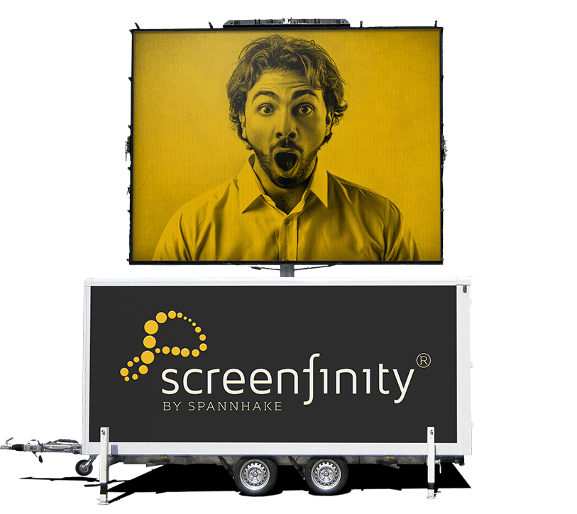 screenfinitymobile veredelt Ihren Auftritt auf Messen, Konzerten oder Veranstaltungen. Einfach abstellen, dann nur noch anstellen – einfacher und schneller geht es nicht.